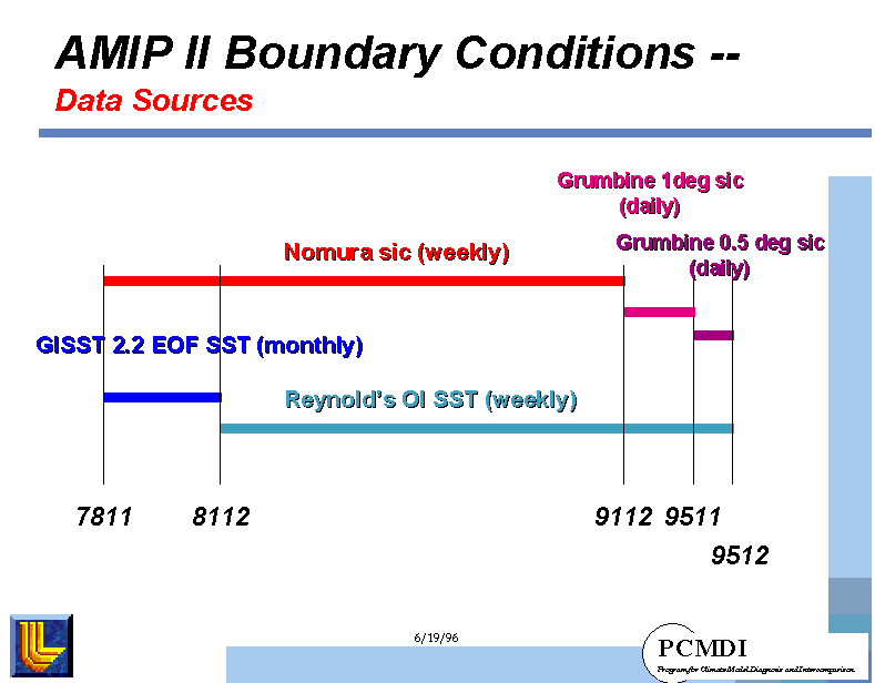 There are several ways to access the data. The recommended path is by having PCMDI generate the BCS and the BCSOBS on your grid. See AMIP Sea Surface Temperature and Sea Ice Concentration Boundary Conditions where you will find links to our generation process as well as links to the data on the 1° grid (http://www-pcmdi.llnl.gov/projects/amip/amip2/AMIP2EXPDSN/BCS/amipobs_dwnld.html) in a variety of formats. This document also gives a complete description of the AMIP II BCS.Conclusion