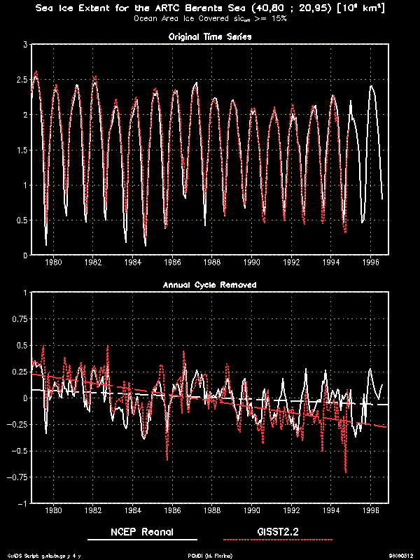 | Berents Sea (Arctic) | Negative trend in GISST, slight negative trend in AMIP II, interesting interannual variation |