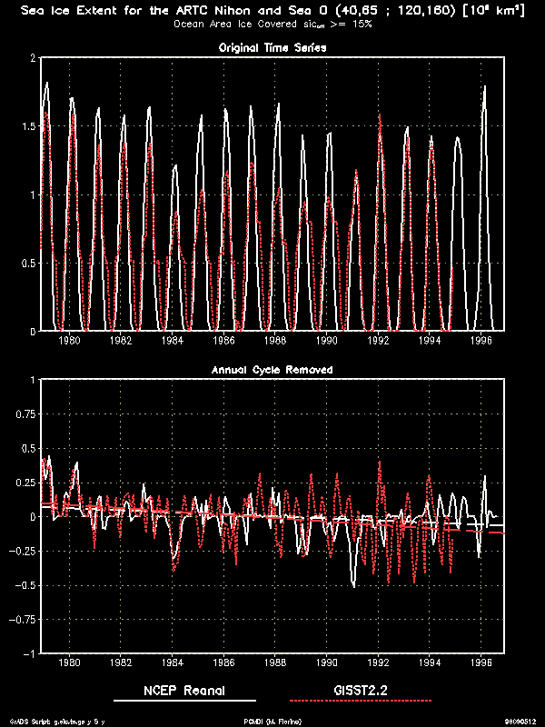 | Sea of O / Japan (Arctic) | Slight negative trend in both data sets, more ice in AMIP II |