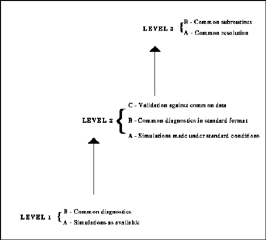 Figure 1: Levels of model intercomparison as defined by the Working Group on Numerical Experimentation (WGNE). The attributes of lower intercomparison levels are assumed to be included in higher levels when appropriate.